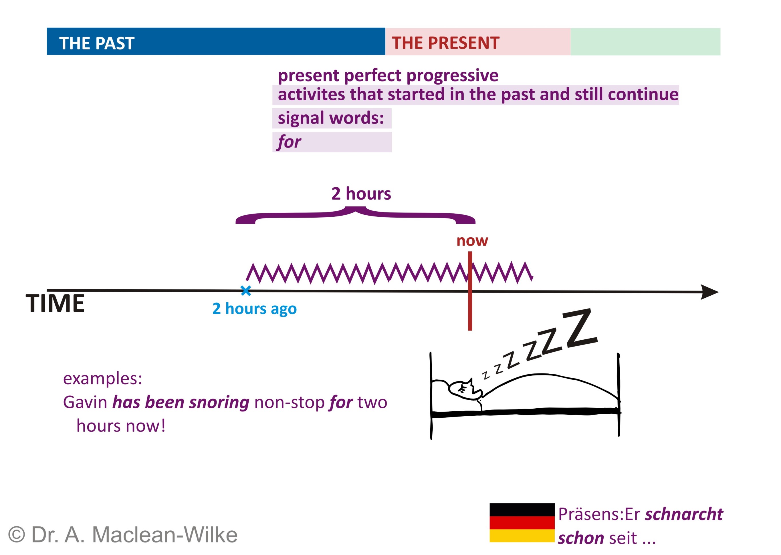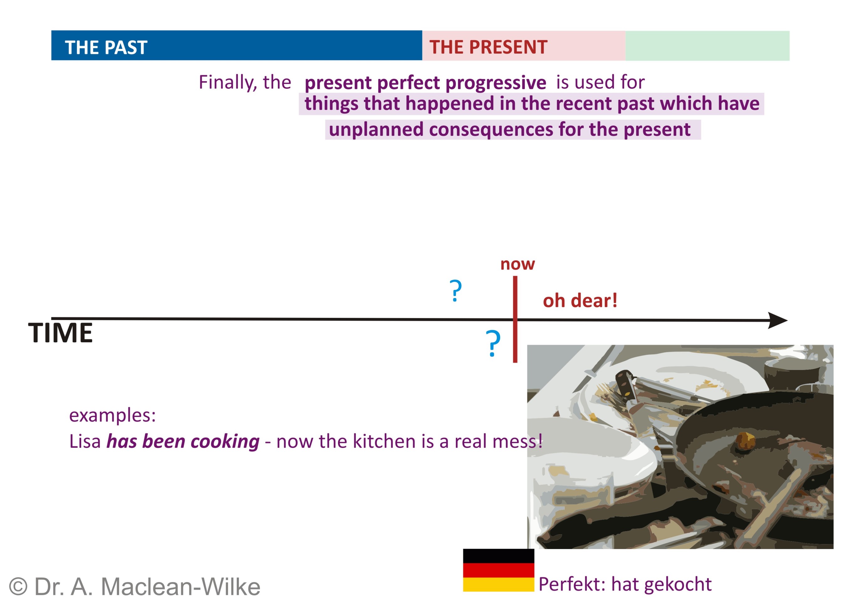 Klicken Sie auf das Bild, um eine Schritt-für-Schritt Anleitung für das Past Perfect Progressive mit Bildchen zu sehen. Einfach auf die rechte (=vorwärts) oder linke (=rückwärts) Bildhälfte tippen oder klicken, am großen Rechner oder Laptop auch per Tastatur navigieren (right-arrow: forward; left-arrow: back; esc: close).