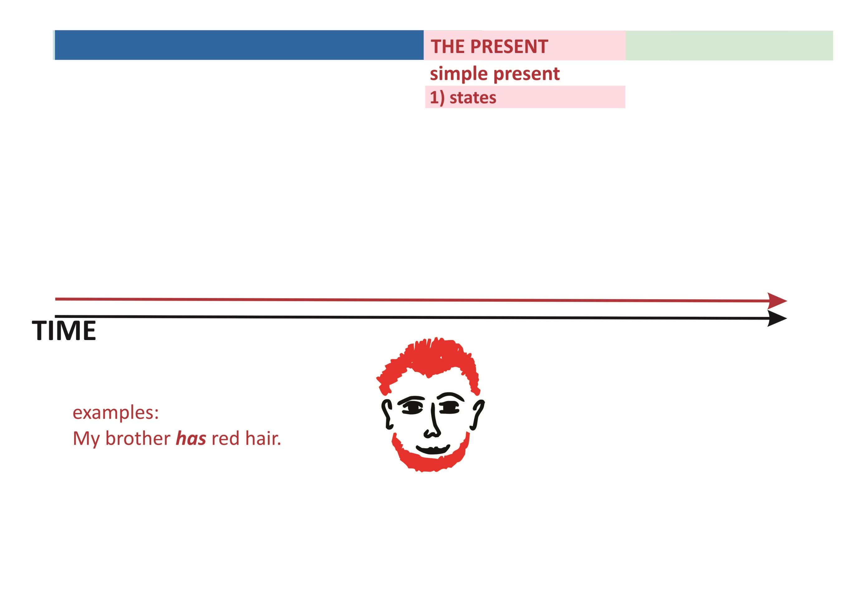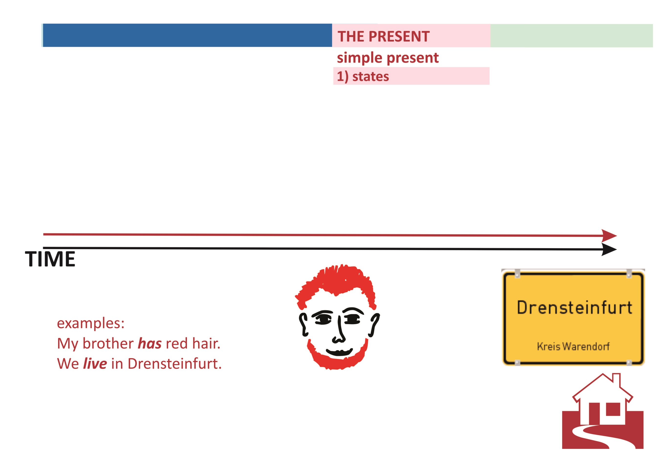 Das simple present wird zur Beschreibung von Zuständen (states) verwendet:- My brother has red hair. (Mein Bruder hat rote Haare.)