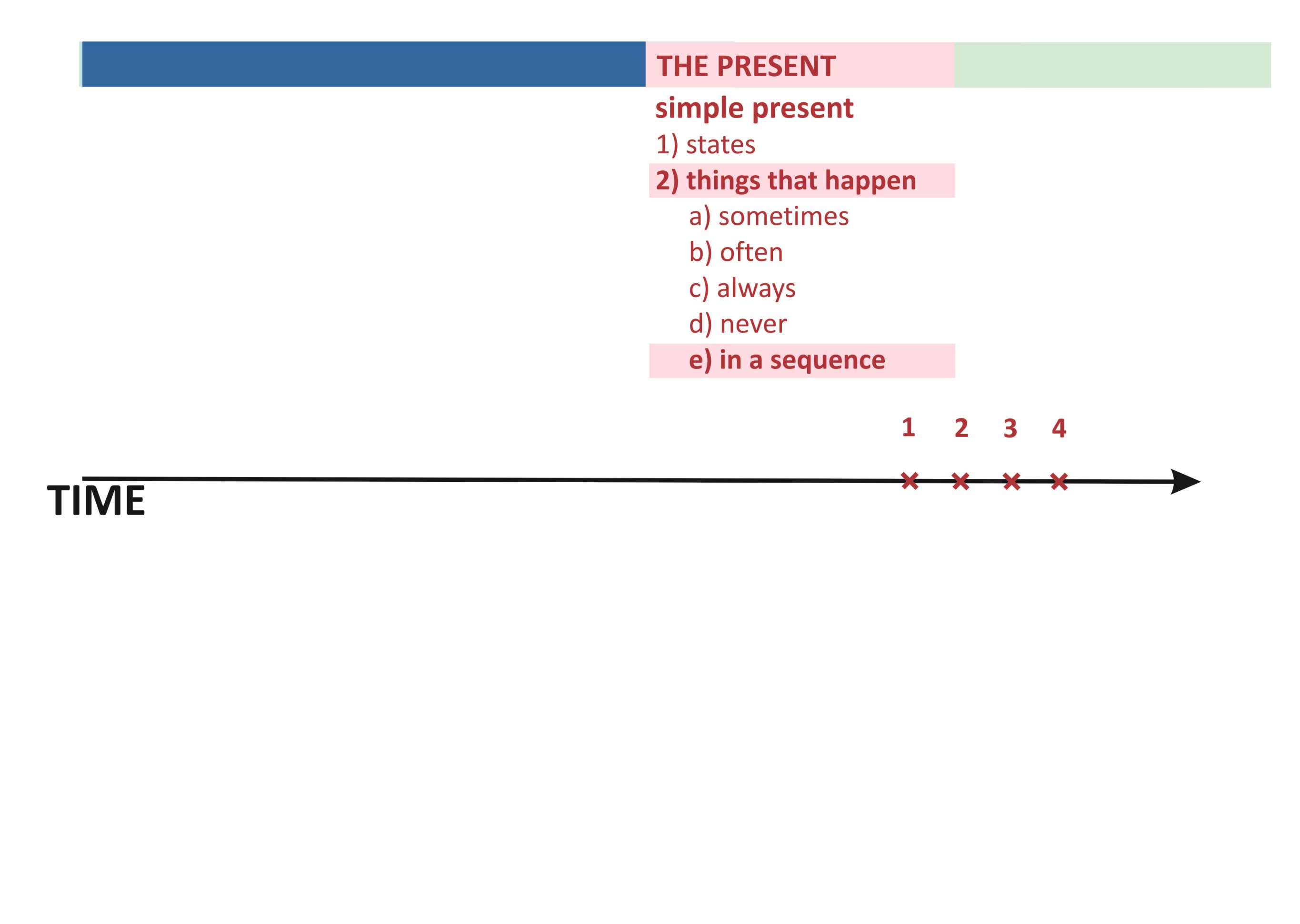 Wenn man über Dinge spricht, die in der Gegenwart hintereinander ablaufen (sequence of events in the present), steht das simple present.: